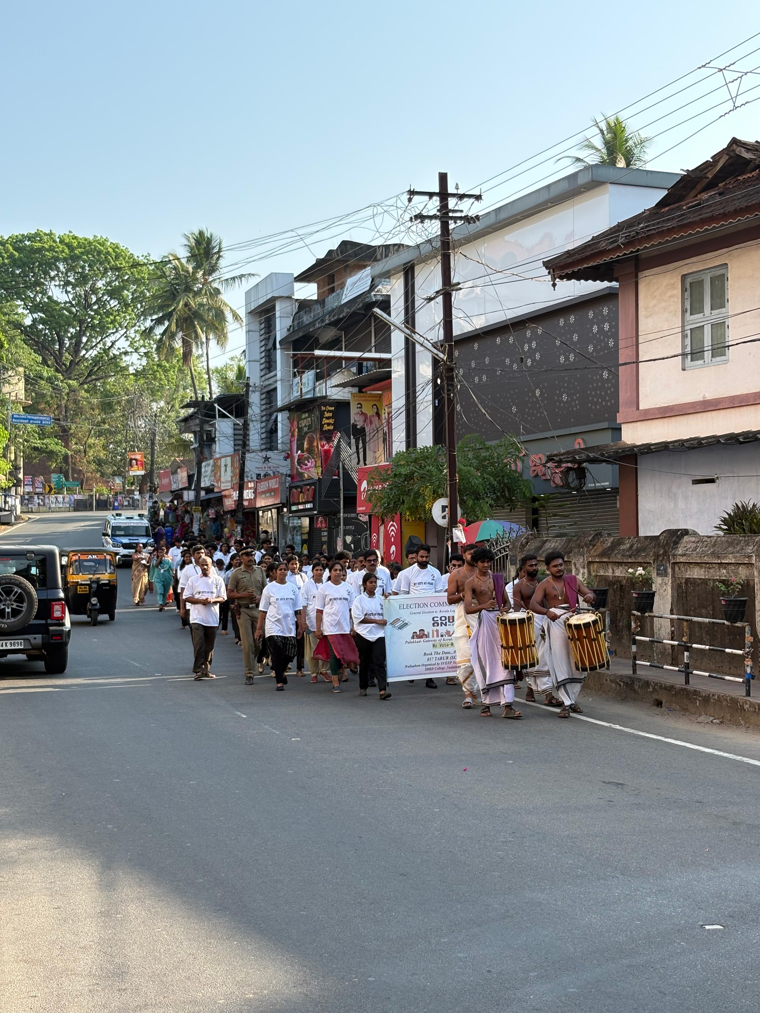 The walkathon, accompanied by the traditional and energetic beats of the Chendamelam, moved from Cherupushpam toward the Vadakkencherry Bus Stand. The rhythmic drumming drew residents and shopkeepers out to the streets, effectively capturing the town's attention.
